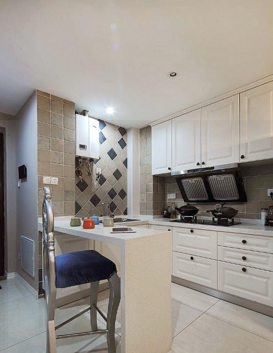 3.厨房的颜色应该给人一种干净整洁的感觉。温馨提示:厨房墙面应选用白色、灰色瓷砖,有利于保护眼睛,地面应选用耐污染性强的颜色。顶部应为浅黄色和浅灰色。