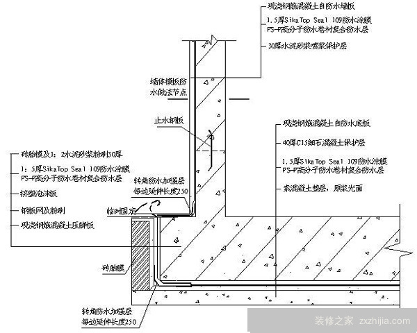 2.在管根、阴阳角、预埋件等节结构应在平面和立面的拐角处增加一层相同的附加层卷材进行加固。平面与立墙交接处附加层卷材的宽度不小于500mm。