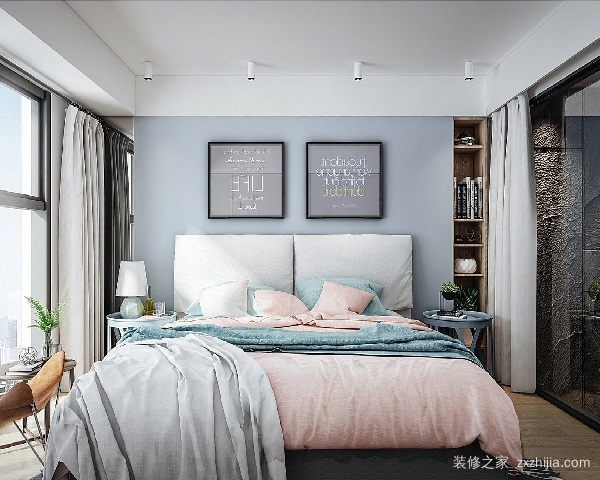 2、窗户阻挡室外噪音。室内声音也可以通过灵活的材料选择来避免。创建一个安静的卧室。一切都优先考虑软。柔软质感的材料选择可以更好地帮助吸声,方便室内音量控制。