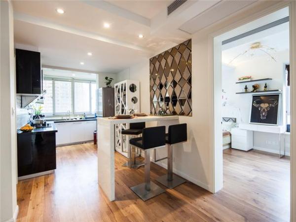 我们可以选择关注关键的设计方法,虽然厨房有一个小阳台,我们可以保持原来的功能,也可以把它放在厨房里,这样可以让厨房感官面积变得更大,也可以让更多的阳光,增加空间渗透性和行走方便。