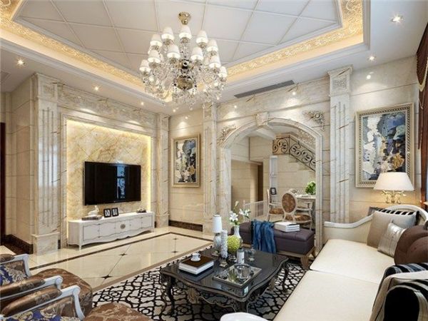 3.客厅天花板的宽度。我们常见的客厅回形天花板,周围的宽度,一般可以保持在40-50厘米左右,当然,具体或根据客厅空间的宽度来决定。