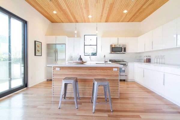 2、厨房天花板这种好桑拿板,桑拿板在国外家居装饰中更常见,需要与装饰整体风格协调,是一种原木材料,经过高温脱脂处理,具有耐高温、不易变形等特点,但也具有良好的防水防腐效果。其表面的木材质地给人一种回归自然的舒适感,事实上,它也可以改变颜色,适合各种设计风格。缺点是,如果拆卸非常具有破坏性,所以最好在安装时留下一个可以进行维护的开口。长期处于干燥的环境中更容易开裂,通常需要业主更加注意更多的维护。