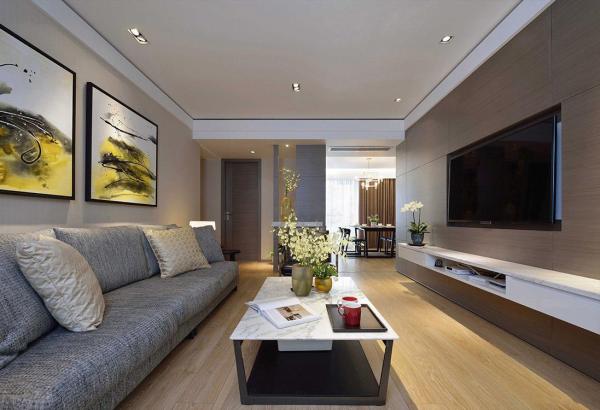 3.老房子的整体布局设计以其独特的创意造型设计给人留下了深刻的印象。房间的地板上铺着浅棕色瓷砖,拼贴着大理石地板。米色的墙壁天花板给人们带来了温暖舒适的视觉体验,为整个房间奠定了优雅清新的氛围。房间中间的浅蓝色布艺术沙发被方形茶几包围着。天花板天花板上的工艺吊灯与复古砖墙电视背景墙与整个房间的装饰相协调,带给人独有美感的视觉体验。